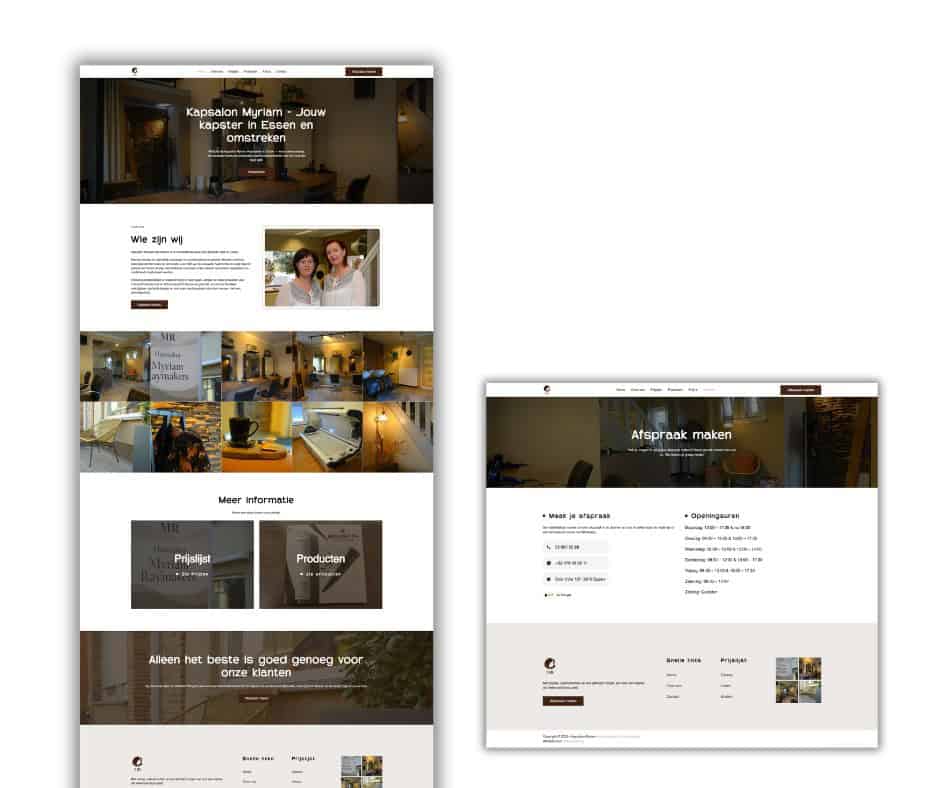 We creëerden een volledig nieuwe website en hielden daarbij rekening met de meest moderne webstandaarden. De nieuwe site van Kapsalon Myriam is dan ook klaar voor de toekomst. We legden een sterke basis voor goede SEO en maakten de site goed leesbaar voor alle gebruikers.